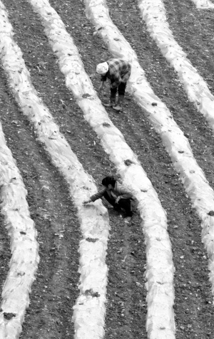 图②3月17日,广西凤山县凤城镇良利村农民在护理地膜玉米。近日,广西凤山县气温逐渐回升,当地农民抓紧进行春耕春管,农田里到处一派繁忙的景象。新华社发