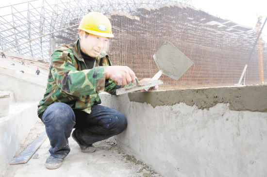 市体育场项目自开工建设以来,各项工作均在全面有序推进,目前已完成的体育场和培训中心土建主体,正在进行粉刷、安装和各项功能配套建设。(记者 李寒 摄)