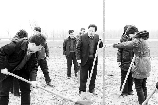 3月12日上午,县委书记赵新安,县政协主席范庆云,县委常委、纪委书记刘体峰,县委常委、政法委书记周晓燕,县委常委、宣传部长牛正田等到国有西华林场张棉庄林站参加义务植树活动。 记者 张猛 通讯员 张思 摄