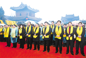 昨日上午,徐光、岳文海等市领导和参加百商汇周口招商活动的工商界代表共同参加了壬辰年恭祭太昊伏羲氏大典。(记者 沈湛 摄)