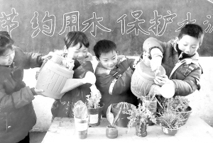 项城市行知学校的学生正在上节约用水课。项城市在中小学校开展了“低碳生活,节约用水”主题教育活动,让小学生从小养成节约水资源的好习惯。(赵献伟 摄)