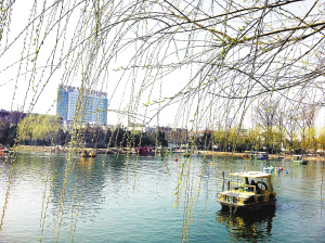 昨日阳光灿烂,市区人民公园里的柳树新芽萌发。近日,我市天气以晴好为主,气温持续上升,柳树开始发芽,为城市增添了一抹淡淡的新绿。(记者 李寒 摄)