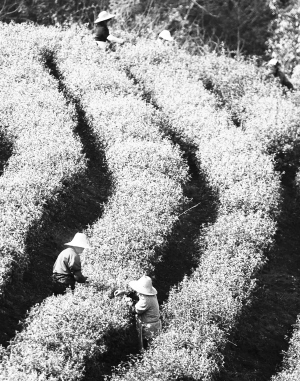 江西茶农“抢春”忙 3月26日,采茶工在江西九江庐山山北茶园采摘庐山云雾新茶。近日,庐山天气持续晴好,气温回升,受持续阴雨低温天气影响长势欠佳的庐山云雾春茶不断抽芽生长。目前,庐山山北茶园的首批早熟云雾春茶已开始零星采摘,开采期较上年推迟近半个月。