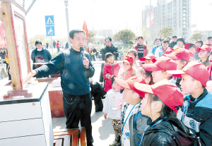 3月24日,自办雷锋画展41年的鹿邑县乡村教师孙永清与《周口晚报》的小记者面对面交流,向小记者讲述雷锋同志的先进事迹。