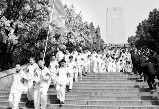清明祭先烈 3月31日,济南市历城四中的师生前往济南英雄山革命烈士陵园祭扫革命烈士墓。清明节前夕,济南市的中小学组织师生来到济南英雄山革命烈士陵园扫墓,并参观位于烈士陵园内的济南战役纪念馆,聆听先烈事迹,重温革命历史。 新华社记者 徐速绘 摄