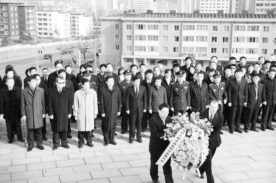 中国驻朝鲜使馆人员祭扫志愿军烈士墓 4月4日清明节,在朝鲜首都平壤,中国驻朝使馆外交官向友谊塔敬献花圈。当日,中国驻朝鲜大使刘洪才率使馆外交官和在朝中资机构代表,来到中国人民志愿军烈士纪念碑——友谊塔和兄弟山志愿军烈士墓祭扫并敬献花圈,深切缅怀入朝参战的中国人民志愿军烈士。友谊塔位于平壤中心牡丹峰西北侧的山岗上,保存着载有22700名烈士姓名