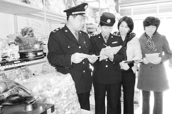 清明节期间,西华县工商局开展祭祀用品市场专项整治行动,严查无照经营、超范围经营、销售封建迷信祭祀用品等违法违规行为。图为3月31日,该局执法人员在一家祭祀用品店检查时的情景。(陶中海 摄)