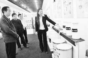 把原料“吃干榨净”,不断延伸产业链条,成为郸城农产品加工的主要特色。该县专业从事玉米加工的财鑫液糖公司不仅把玉米加工成淀粉、葡萄糖等初级产品,又从中提炼生产出黄原胶、山梨糖醇、结冷胶等40多种精深产品,创造了玉米精深加工的奇迹。图为在财鑫集团的展览室里,解说员向前来参观的人员介绍研制的新产品。 (记者 王映 摄)