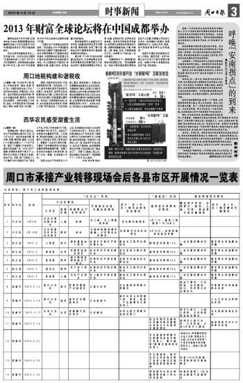 周口市承接产业转移现场会后各县市区开展情况一览表
