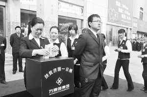 昨日,市区一大型超市连锁企业开展扶贫济困捐款活动。自扶贫济困一日捐活动启动以来,我市社会各界和广大群众积极响应,用实际行动为身处困境的人们送去温暖。