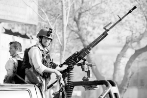 喀布尔连环爆炸袭击致8名警察身亡 4月16日,在阿富汗首都喀布尔,阿富汗士兵在袭击事件发生地点附近巡逻。喀布尔警察犯罪侦查部门负责人穆罕默德·查希尔当日说,袭击事件共造成8名安全人员死亡。新华社发