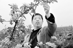扶沟县紧紧围绕“生态立林、产业强林、改革活林、依法治林”的工作思路,依托工程抓生态,突出特色兴产业,走出了生态、经济、社会效益同步增长的林业发展之路。图为该县农民为苹果树疏花。