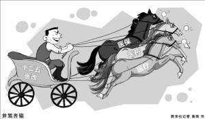 日前召开的全国深化医药卫生体制改革工作会议提出,“十二五”期间,我国医药卫生体制改革将迎难而上,着力在全民医保建设、基本药物制度巩固和公立医院改革三个方面取得突破,抓住医保、医药、医疗三个重点环节,实行“三轮驱动”,力争取得新的更大进展。 新华社发