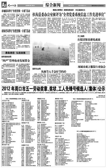 2012年周口市五一劳动奖章、奖状、工人先锋号候选人(集体)公示