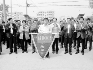 黄真伟为花园办事处、项城市住房和城乡建设局两家先进单位授予了红旗,并颁发了10000元奖金(如上图)。先进单位负责人作了典型发言。