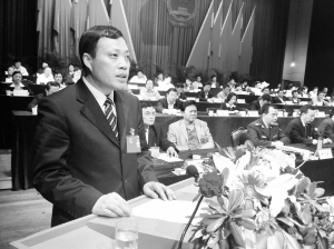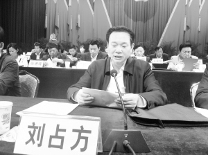 图为刘广明在郸城县十三届人大一次会议上作政府工作报告。(记者 卢好亮 摄)