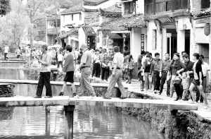 快乐过“五一” 5月1日,游客在江西婺源李坑景区游览观光。“五一”小长假期间,江西婺源县共接待游客25.1万人,门票收入615.6万元,同比分别增长50.1%和46.8%,创历史同期新高。当日是“五一”小长假最后一天,各地旅游景点的游客依然络绎不绝。