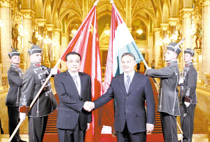 李克强与匈牙利总理欧尔班举行会谈 5月1日,国务院副总理李克强在匈牙利首都布达佩斯国会大厦与匈牙利总理欧尔班举行会谈。 新华社发