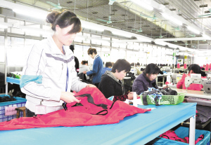 近年来,太康县服装纺织、循环造纸、低碳锅炉等支柱产业发展情况良好,取得了良好的社会效益和经济效益。图为宏星制衣公司车间内一派繁忙的生产景象。(记者 沈湛 摄)