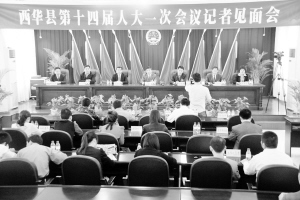 本报讯 (记者 张猛 文/图) “刚刚闭幕的西华县十四届人大一次会议选举产生了新一届政府领导班子成员,我们没有感到兴奋或者荣耀,而是感到更多的压力和责任。在今后工作中,我们政府领导班子将尽职尽责、努力工作、不辱使命,以实际行动回报党组织的信任和人民群众的重托。”4月29日,西华县县长王田业率领新一届政府领导班子成员在记者见面会上开门见山地说,并就媒体提出的问题进行详细解答。
