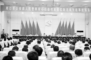 5月7日,周口市公安局“人民警察核心价值观教育实践活动”先进事迹报告会在川汇区委会议室举行。李春伟、王立新、郭婷婷等来自全区不同岗位的7名优秀干警代表,在平凡的工作岗位上做出了不平凡的业绩,他们用自己的亲身经历阐述了“人民警察为人民”的核心价值观,使与会人员受到了一次心灵洗礼。(记者 高洪驰 摄)