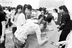 5月10日,周口幼儿师范学校举行庄严隆重的十八岁成人仪式,号召学生争做“感恩、责任、自强、拼搏”的社会主义合格公民。图为成人仪式签字场面。(刘琰 摄)