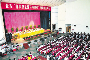 市委副书记、代市长岳文海在讲话中明确了此次活动的指导思想、主题、目标和原则,并对学习提高、查摆问题、集中整改、巩固提升四个阶段的时间安排以及主要工作任务进行了安排部署。岳文海要求,结合实际,确保活动深入推进。领导带头抓落实。各级领导干部要切实增强规则意识、执行意识、表率意识,把活动的落实过程作为对干部能力和水平的一次检验,确保时间、人员、步骤、内容、效果五落实。认清职责抓落实。各级各单位要结合实际,通过公开承诺、公开纳谏、公开评议等方式,找准问题,分析原因,认真整改,确保解决问题,求实求效。统筹结合抓落实。各级各部门要把作风整顿工作与深入开展创先争优活动、推进“两转两提”、加强机关效能建设、优化发展环境、干部提拔任用、做好新时期群众工作、全面完成经济社会发展各项目标任务结合起来,对机关作风和环境创优方面存在的问题,广泛征求意见,认真开展自查自纠,有针对性地进行整改,推动中心工作。要着眼长效抓落实。始终把握求真、求实、求效的原则,坚决克服和杜绝走过场、图形式的问题,建立健全长效机制,提高转作风、优环境的规范化、制度化水平。