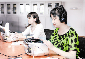图为两名盲人读者在中国盲文图书馆有声读物阅听区收听录制好的有声读物。位于北京市西城区南纬路太平街交叉口的中国盲文图书馆,是一家面向全国盲人提供综合性文化资讯服务的公益性机构。图书馆的270余名员工(其中包含29名盲人员工)和500余名志愿者,努力为盲人读者提供一站式的公共文化服务。
