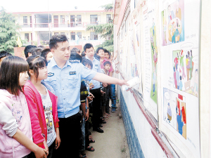 商水县白寺镇派出所民警在白寺一中向学生讲解邪教对家庭和社会造成的危害。连日来,白寺镇综治办联合派出所巡回全镇22所中小学校开展反邪教宣传教育进校园活动,受到广大学生的欢迎。(乔连军 王兴军摄)