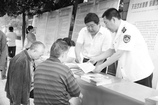 昨日,市疾病预防控制中心、市卫生监督处在市区七一中路举行了大规模的安全用水咨询活动,他们发放安全用水宣传咨料,解答群众各种用水方面的问题,受到群众欢迎。王映 摄