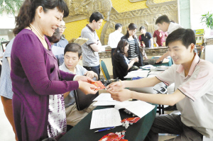 昨日上午,参加市政协三届一次会议的委员陆续报到。(记者 王映 摄)