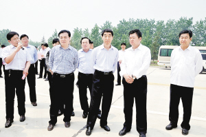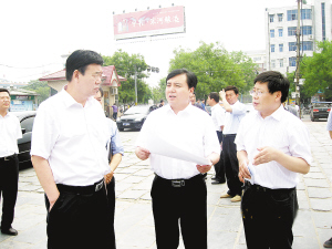5月4日,副省长王铁、市委书记徐光、代市长岳文海察看项城市城市建设。(记者 王映 摄)