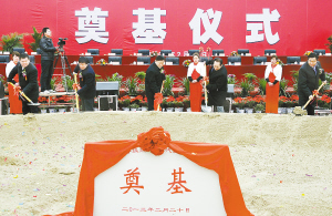 2月20日,2×300MW等级燃气热电厂在项城奠基。副省长张大卫、中石油副总裁黄维和、中电投副总经理邹正平、市委书记徐光、代市长岳文海为工程奠基。(记者 沈湛 摄)