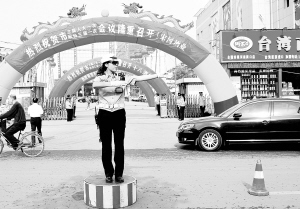 上图:交警指挥交通。