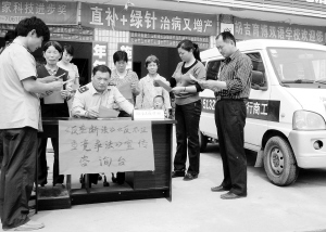 近日,商水县工商局开展中原红盾反垄断、反不正当竞争集中宣传活动,图为工商人员向消费者散发宣传单,讲解反垄断、反不正当竞争有关知识。