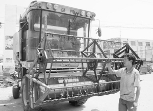 沈丘县东城办事处马庄农机手李海超在检修“谷神”收割机。为更好地发挥收割机在麦收期间的“铁军”作用,确保小麦颗粒归仓,沈丘县农机局组织技术人员深入到村、户,指导农户安装、检修小麦联合收割机。(韦伟 迟驰 摄)