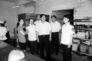 天气炎热,食品安全隐患日渐突出。近日,周口市卫生监督处组织执法人员开展夏季食品卫生安全专项检查,督促各餐饮单位严格按规定、标准落实食品安全管理措施,进一步优化餐饮消费环境,确保广大群众饮食安全。(周兵 摄)