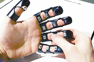这款手套式打电话手机,拇指与小指分别是听筒和话筒,其余指头关节处则设置了数字按键与接听、挂断键。在手背的壳体内则安置了芯片和电池,只要插上SIM卡即可像普通手机一样通话,非常方便。(科技日报)