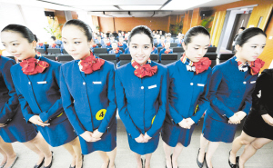 5月29日,云南祥鹏航空在昆明举行空中乘务员专场招聘会,吸引了众多欲圆“蓝天梦想”的俊男靓女前来应聘。其中,大部分应聘者为即将走出高校的“90后”大学生。图为应聘现场。( 新华社发)