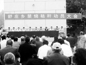 5月27日,舒庄乡政府召开“三夏”秸秆禁烧动员会,全乡29个行政村三要职、五护员、教师、乡机关干部参加会议。乡政府与各行政村和驻村干部签订了“三夏”秸秆禁烧目标责任书。(记者 岳建辉 通讯员 乔连军 摄)