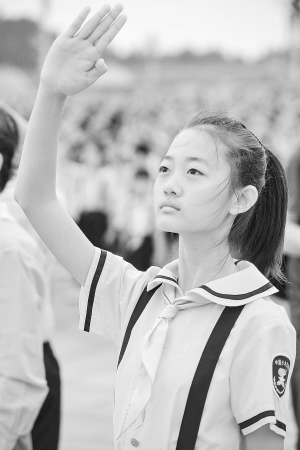 6月1日,少先队员代表在向人民英雄纪念碑敬礼。当日是“六一”国际儿童节,北京千名小学生在庄严的天安门广场,参加“红领巾心向党”集体入队仪式,用这种有意义的方式欢度自己的节日。 新华社记者 李鑫 摄
