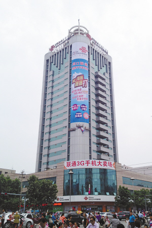 日前,市区中心某大楼悬挂出一巨幅宣传画,引得路人纷纷驻足昂首观看。据了解,此画面最高处距离地面100余米,面积近700平方,是周口目前最高、最大的户外广告画,远在数公里外依然清晰醒目。此画面是周口联通公司配合“手机随意打”业务精心策划的一次宣传活动。