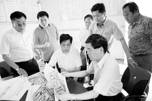当天上午,陈志伟一行首先来到鸣鹿办事处新型农村社区选址地,这是一块方方正正、地势平坦的地块,南面有鹿辛运河清水潺潺,北靠宽阔干道,交通便利。走近之后,一块巨大的新型农村社区宣传广告牌很是醒目,广告牌上社区介绍、效果图内容吸引了人们的目光。陈志伟走到近前兴致勃勃地细致观看,并不时询问。在户型平面图的“母子房”等6种户型前,陈志伟停下脚步,关切地询问这种户型来由。原来,这里是鸣鹿办事处工作人员进村入户广泛征求群众意见后,为解决那些父母不愿与子女同住,子女又不放心父母独住村民的实际情况,借鉴外地经验专门设计出来的户型。这种户型父母住房与子女住房相连又相对独立,可以互相照顾而又互不影响。陈志伟听了介绍后连连称赞。随后,陈志伟一行来到产业集聚区管委会新型农村社区选址地。现场,书记不时询问,干部一一回答,书记询问地关切,干部回答地认真。