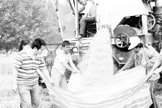 昨日,川汇区文昌办事处郭埠口社区的农民正在收割小麦。眼下正值麦收时节,农民抓住有利天气,抢收小麦,确保“颗粒归仓”。 (记者 王映 摄)
