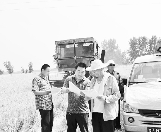 三夏期间,淮阳县产业集聚区管委会人员深入田间地头,将安全知识送到农民身边,确保三夏生产安全。(侯俊豫 黄治坤 摄)