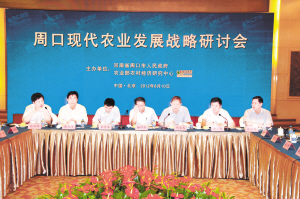 本报北京电 (记者 吴继峰) 6月10日下午,由周口市人民政府和农业部农村经济研究中心共同主办的周口现代农业发展战略研讨会在北京河南大厦隆重举行。会议的任务是深入贯彻落实《国务院关于支持河南省加快建设中原经济区的指导意见》,研讨《关于加快发展现代农业推动周口经济跨越发展的若干建议》,共话周口现代农业和经济社会发展大计。来自国家有关部委办局和部分高等院校、科研院所的领导和专家学者会聚一堂,为周口现代农业发展谋思路、提建议,共同研讨传统农区的“三化”协调发展之路。