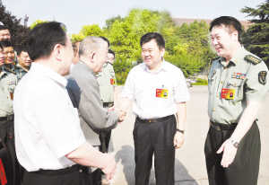 周口军分区领导郎广慧、徐义团、陈泽凯、崔瑜和周口军分区老领导霍本廉、申山、张耀荣、张德斌、赵文、张庚山参加接见。