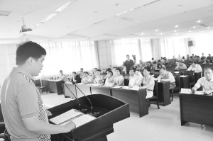 6月14日上午,周口日报社举行“作风转变暨环境创优”活动转段动员大会,以一场“转变作风树形象、务实重干铸辉煌”演讲报告会拉开了查摆问题阶段的序幕。 (记者 王映 摄)