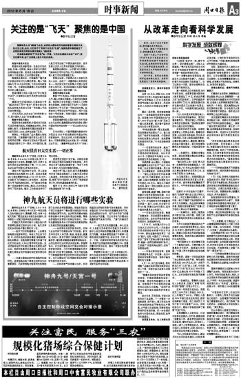 随着神舟九号飞船直飞太空,全球各大媒体的目光纷纷追逐中国航天员的太空之旅。这次,它们给予了有别于以往的“礼遇”,报道热度和频度超过了此前的国际空间站对接及俄载人飞船发射。许多媒体都使用了“历史性”这一字眼。它们关注着航天员的“飞天”,更关注着中国,这个全球载人航天中的后来者。