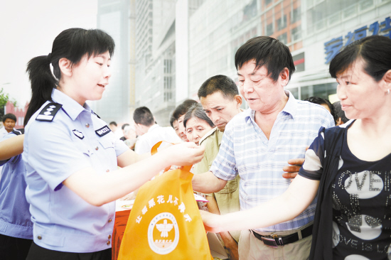 6月26日,在合肥市国购广场,一名警察在给市民分发禁毒宣传材料。当日是“国际禁毒日”,各地开展形式多样的禁毒宣传活动,通过知识讲座、实物展示、图文展板、发放宣传资料等,让群众了解毒品的危害,进一步提高人们识毒、防毒、拒毒和禁毒意识,告诫人们远离毒品,珍爱生命。(新华社记者 杜宇 摄)